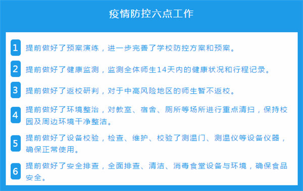 为确保全体师生的身体健康和生命安全,学校在开学前召开了返校工作准备会议。会议上严格制定了返校工作的具体流程与安排,责任细化到人,努力保障顺利开学。
