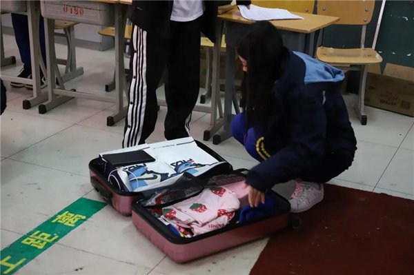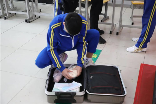 随后,同学们在一楼大厅进行报道签字、体温检测与行李检查。确保体温安全、未携带违禁品后,学生方可回到所在宿舍。