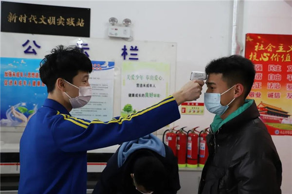 2月28日早上7点30分,由校领导、保卫处、政教处教师与部分学生会同学组成的迎接小组率先到达学校,为返校同学做好准备工作。