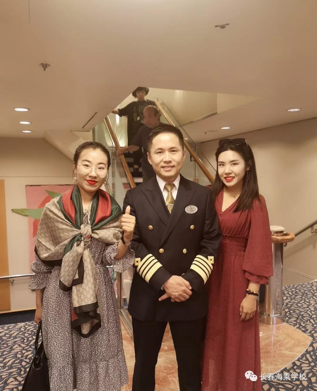 哈哈,船长竟然是中国人。我们俩大吃一惊,要不要这么幸运! 武惠明,山东青岛人,从2018年11月23日起,成为首位皇家加勒比国际邮轮公司的亚洲船长。我们说明来意,武船长很随和,愉快的答应了我们,亲自派人找来了3名海乘毕业生,分别是来自吉林农安的客房部主管刘同学,来自吉林长春的餐厅主管彭同学,来自吉林农安的摄影师王同学。
