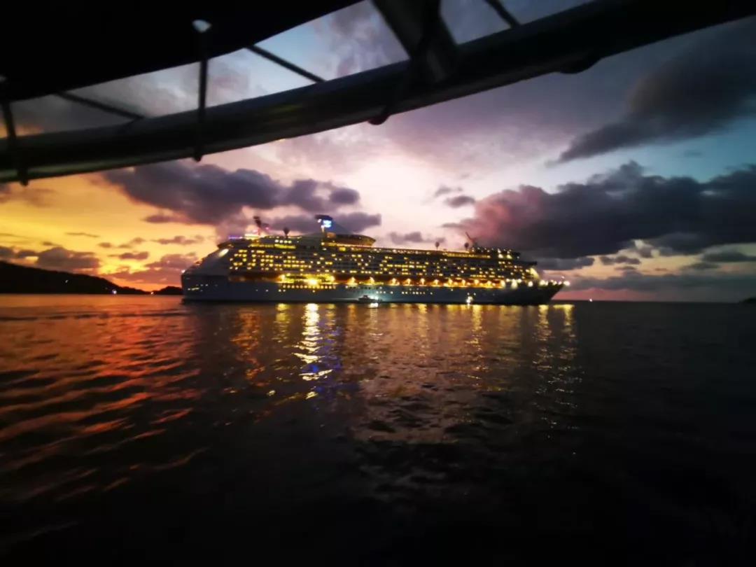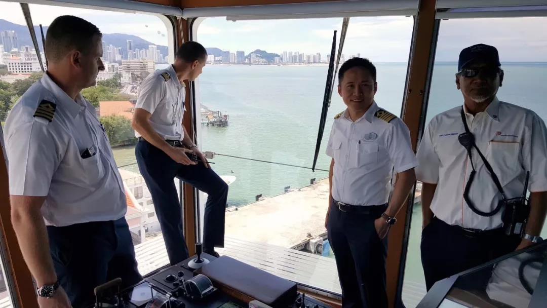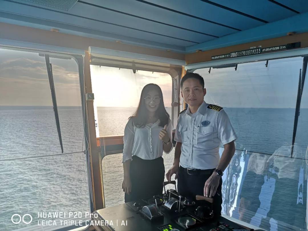 返程途中,我们对武惠明船长做了详细访谈。武惠明第一次加入皇家加勒比邮轮公司的时间是在2014年,在此之前,他曾在多家邮轮公司工作了近20年,并是在中国的货船上开始了他的航海生涯。1995年出海后,他的第一份工作是在一艘驶往东南亚的中国货船上当甲板学员。当他在2000年第一次上到邮轮时,他意识到自己喜欢与更大的团队合作,喜欢与不同国籍的人交流。武惠明在接受采访时表示:做海乘的工作是需要激情的,它是黄金产业,可以极大地丰富一个人的视野,跟随邮轮行走世界各地,见识不同的风土人情、文化背景,眼界会极大的开阔,资薪水平高,短时间内就可以积累个人财富。