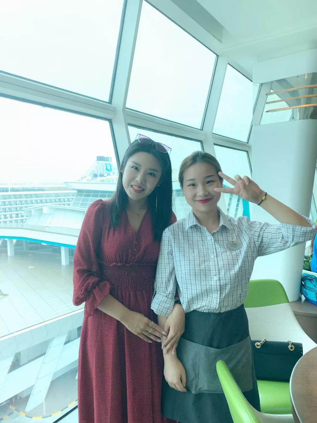 尊敬的各位读者,大家好!我是海乘学校招生办周主任。前不久,学校决定派我和李易昕老师去皇家加勒比国际邮轮海洋航行者号上进行考察,任务是走访已经在邮轮上就业的我校毕业生,并实地了解国际邮轮就业现状和用人需求。我们俩开心到爆,算一算这些年,我校毕业生与部分高校毕业生外派到邮轮工作的近千人,每次看到发回来的照片,只有“羡慕嫉妒恨”的份,这可是天大的美差啊!